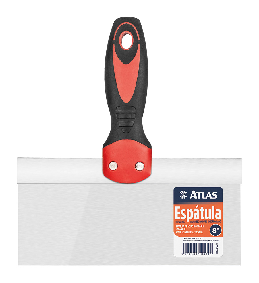 La Espátula Atlas Inox para Yeso AT6455/8 de 200 mm está diseñada para ofrecer precisión, resistencia y comodidad en trabajos de aplicación y terminación sobre yeso y placas de drywall. Su lámina de acero inoxidable brinda una excelente durabilidad, resistencia a la corrosión y un deslizamiento uniforme del material.
